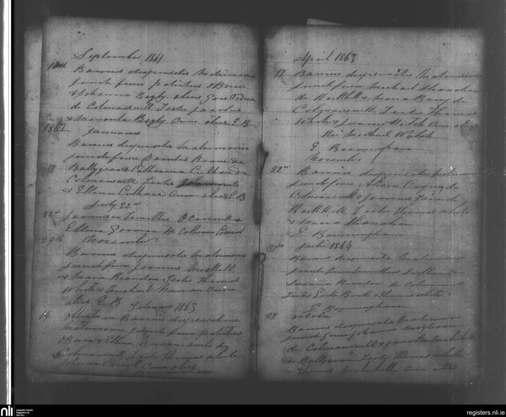 Ballyagran; County of Limerick, Cork; Diocese of Limerick. Marriages, Sep. 1861 to Oct. 1864