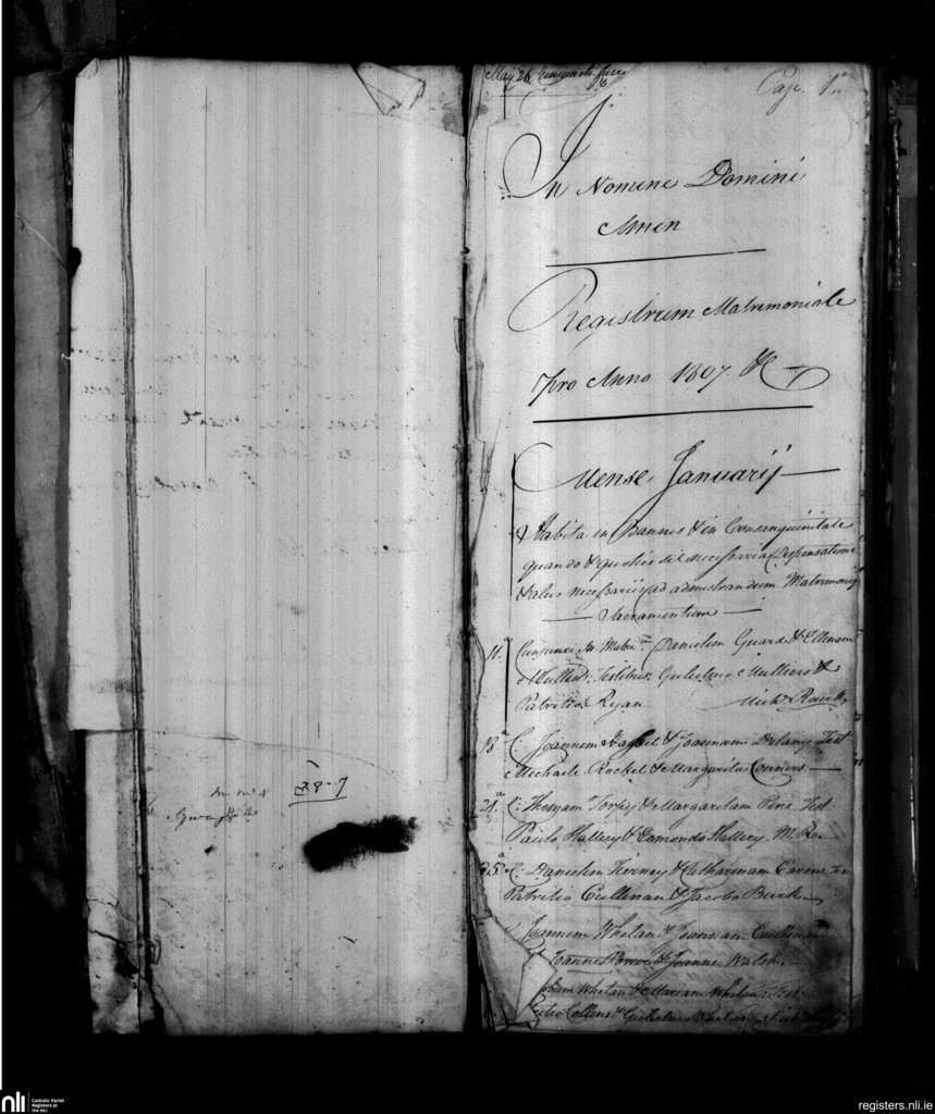 Carrickbeg; County of Waterford; Diocese of Waterford and Lismore. Marriages, Jan. 1807