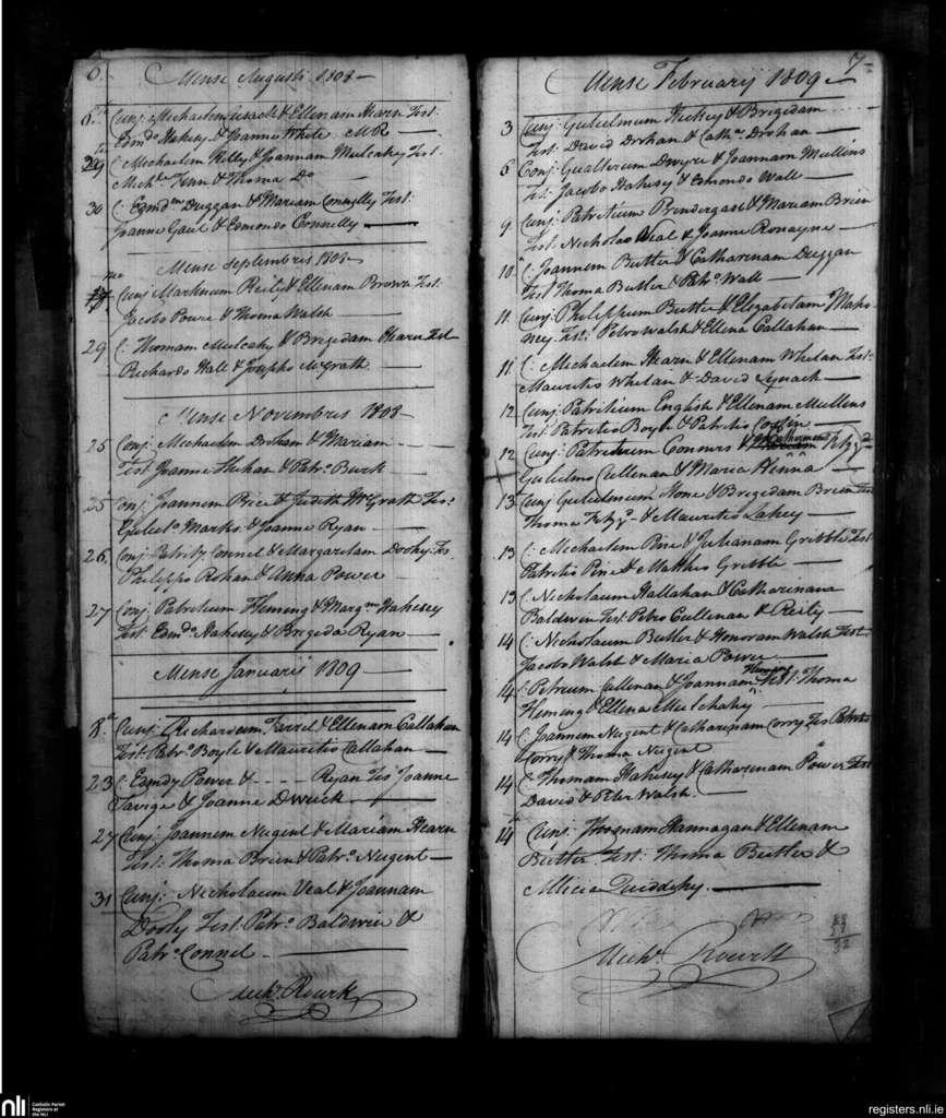 Carrickbeg; County of Waterford; Diocese of Waterford and Lismore. Marriages, Aug. 1808 to Feb. 1809