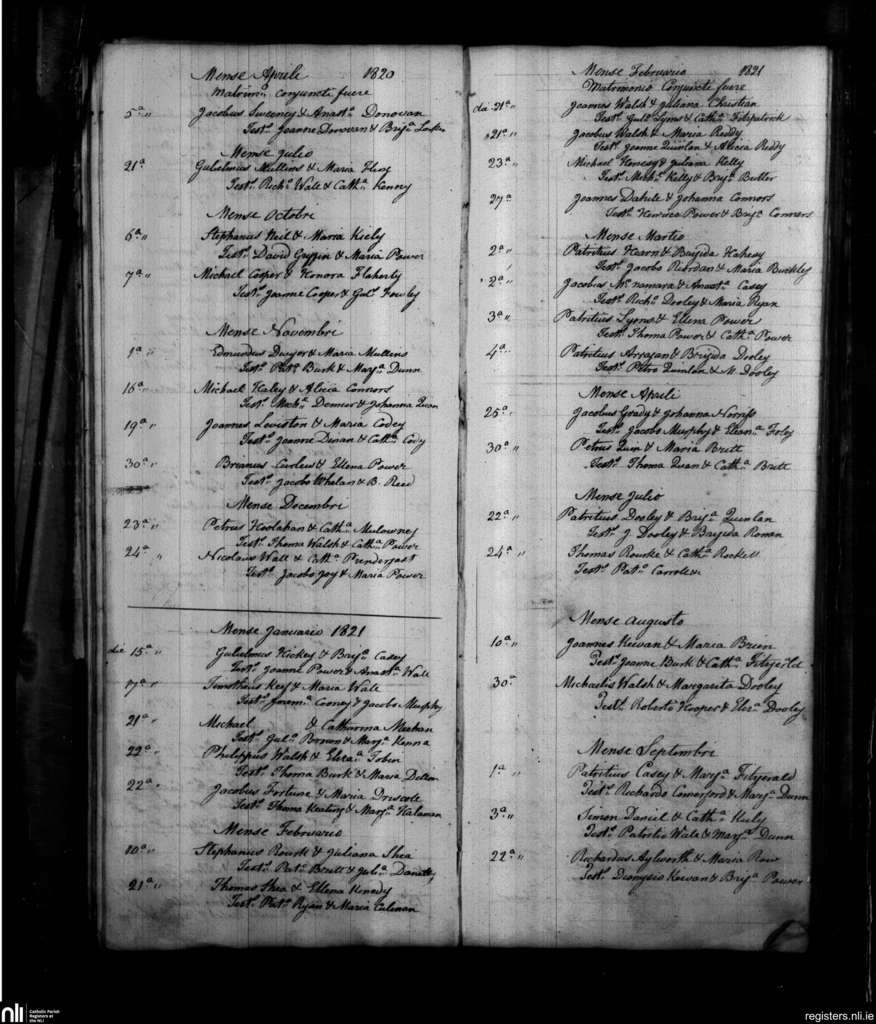 Carrickbeg; County of Waterford; Diocese of Waterford and Lismore. Marriages, Apr. 1820 to Sep. 1821
