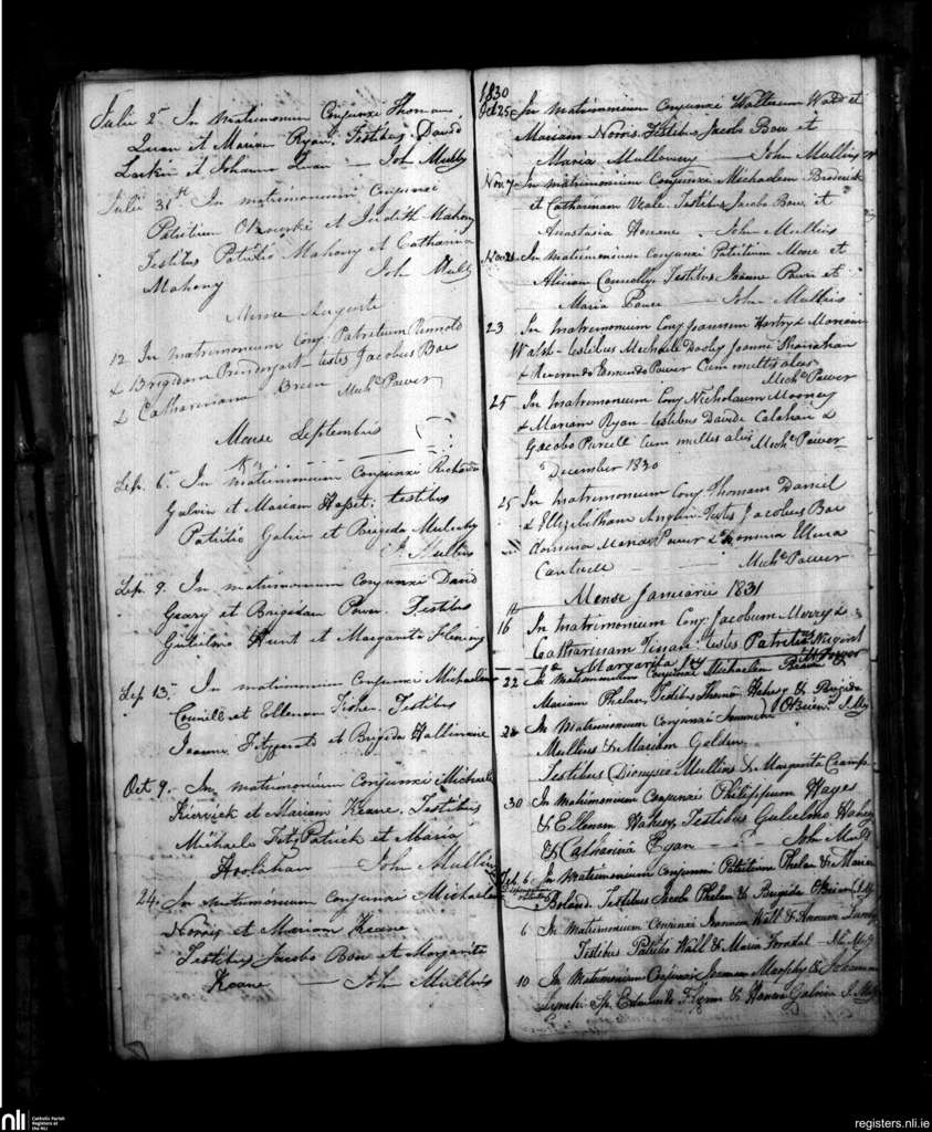 Carrickbeg; County of Waterford; Diocese of Waterford and Lismore. Marriages, July 1830 to Feb. 1831
