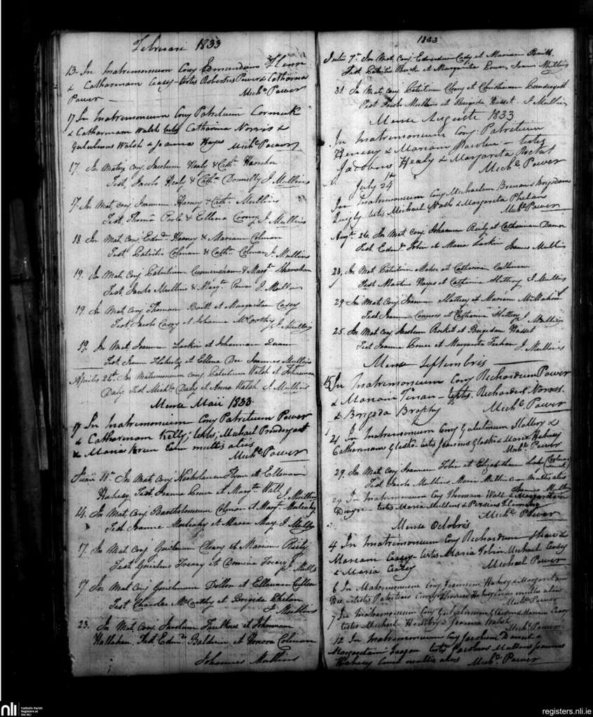 Carrickbeg; County of Waterford; Diocese of Waterford and Lismore. Marriages, Feb. 1833 to Oct. 1833