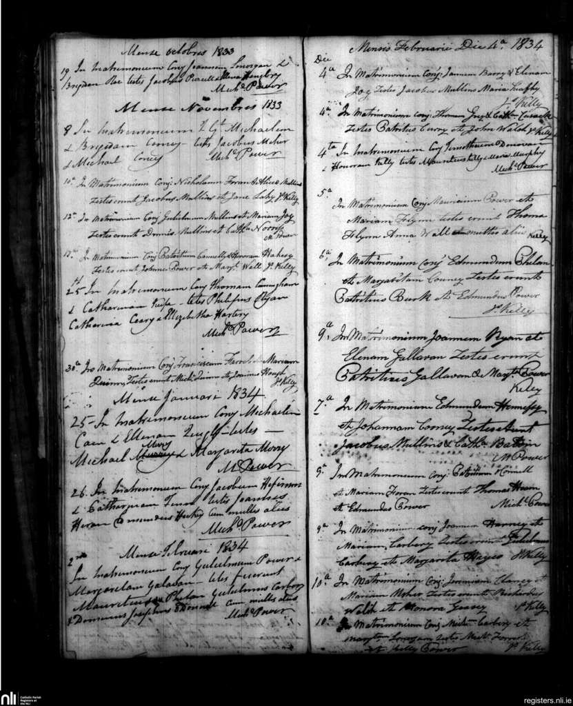 Carrickbeg; County of Waterford; Diocese of Waterford and Lismore. Marriages, Oct. 1833 to Feb. 1834