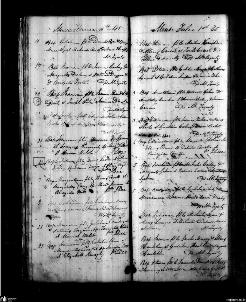 Carrickbeg; County of Waterford; Diocese of Waterford and Lismore. Baptisms, June 1845 to July 1845
