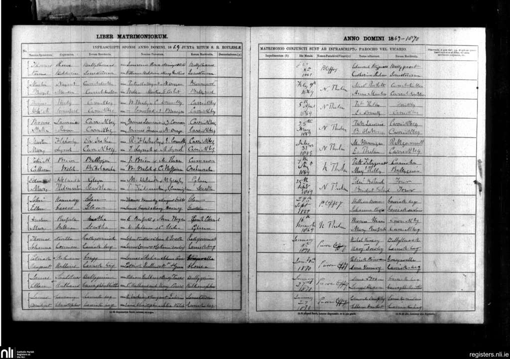 Carrickbeg; County of Waterford; Diocese of Waterford and Lismore. Marriages, Feb. 1869 to Jan. 1870