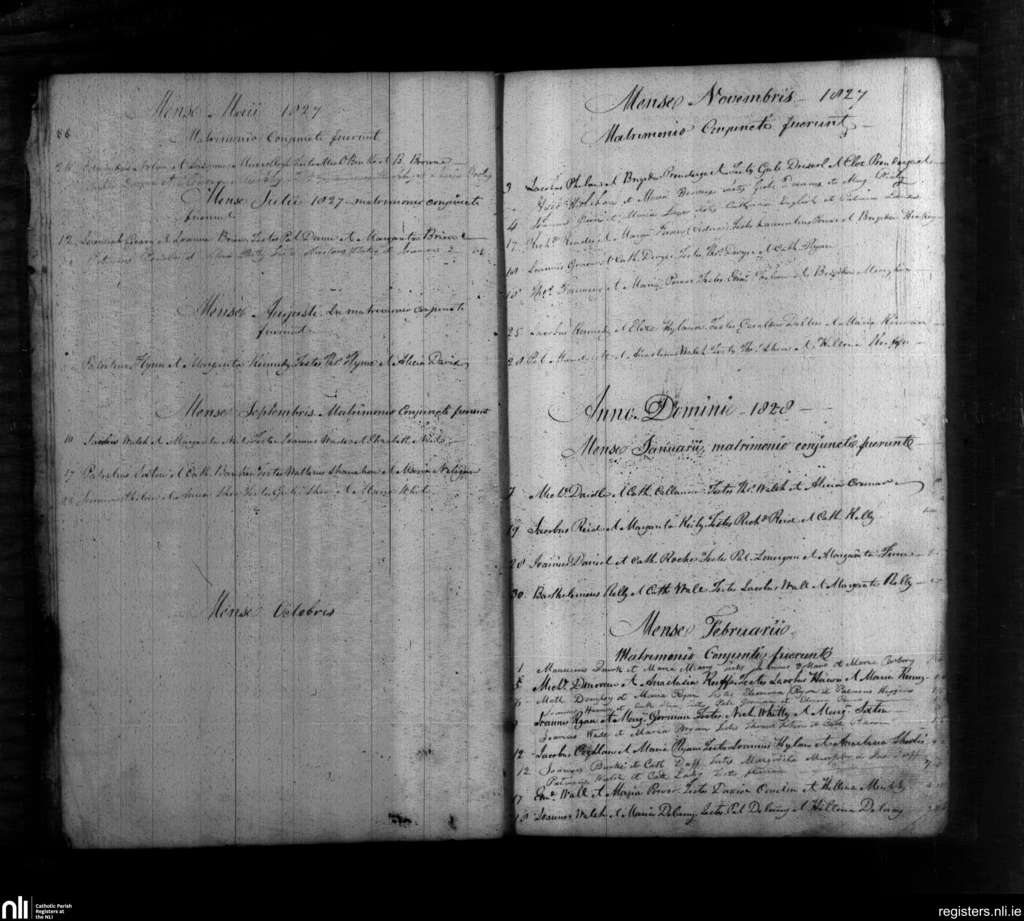 Carrick-on-Suir; County of Tipperary; Diocese of Waterford and Lismore. Marriages, May 1827 to Feb. 1828