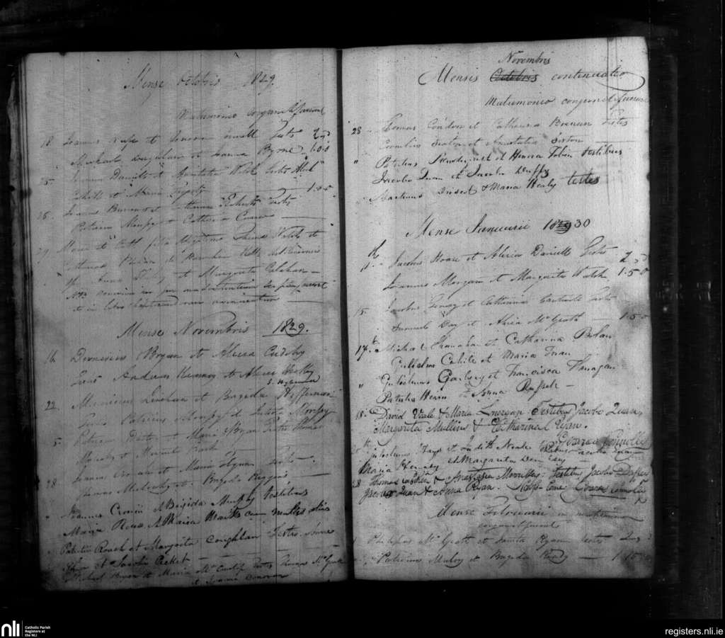 Carrick-on-Suir; County of Tipperary; Diocese of Waterford and Lismore. Marriages, Oct. 1829 to Feb. 1830
