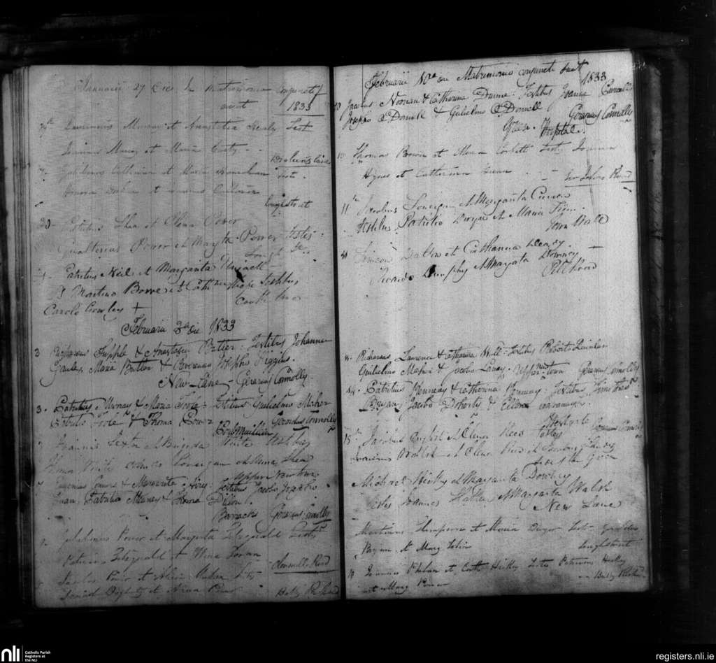 Carrick-on-Suir; County of Tipperary; Diocese of Waterford and Lismore. Marriages, Jan. 1833 to Feb. 1833