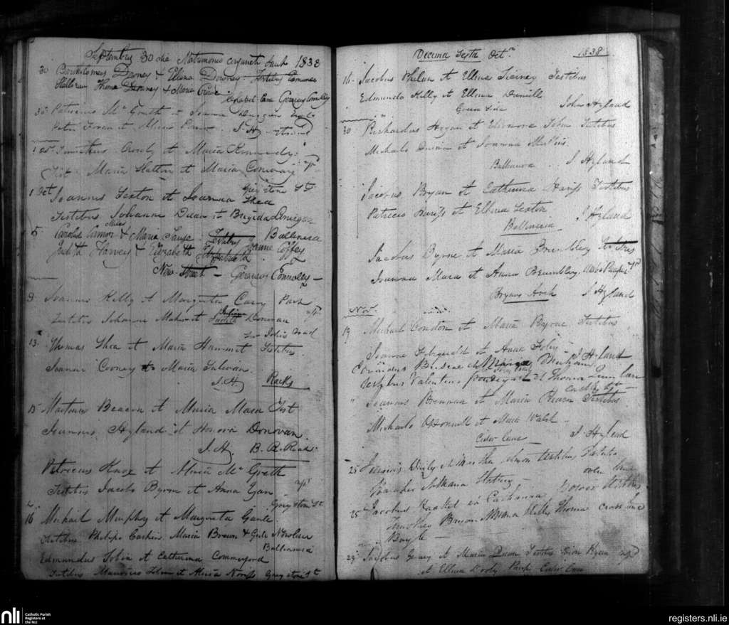 Carrick-on-Suir; County of Tipperary; Diocese of Waterford and Lismore. Marriages, Sep. 1838 to Nov. 1838