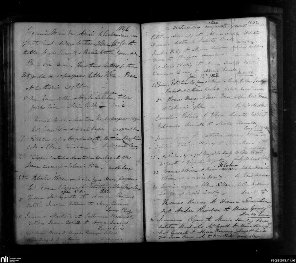 Carrick-on-Suir; County of Tipperary; Diocese of Waterford and Lismore. Marriages, Apr. 1842 to June 1842