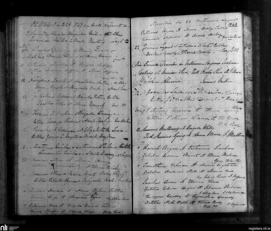 Carrick-on-Suir; County of Tipperary; Diocese of Waterford and Lismore. Marriages, Oct. 1843 to Jan. 1844