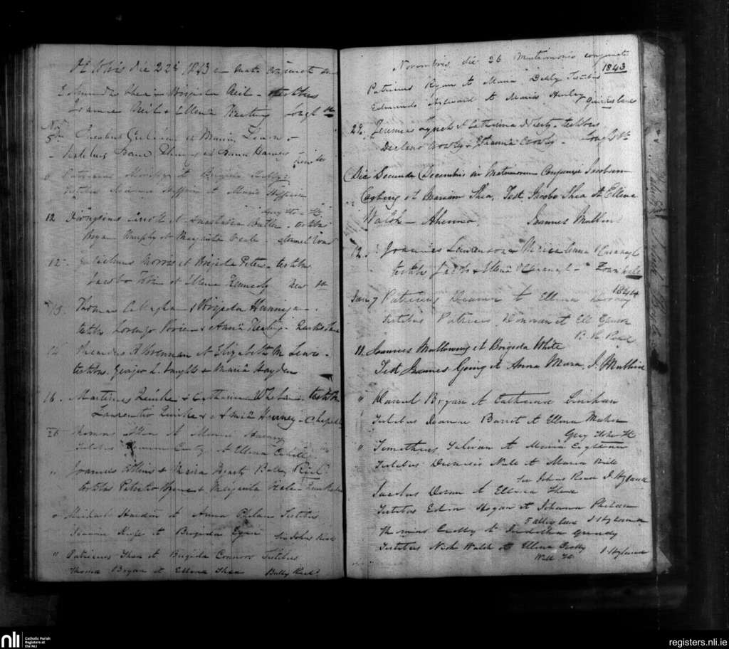 Carrick-on-Suir; County of Tipperary; Diocese of Waterford and Lismore. Marriages, Oct. 1843 to Jan. 1844