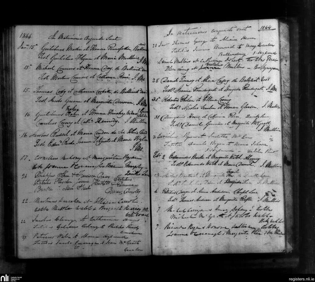Carrick-on-Suir; County of Tipperary; Diocese of Waterford and Lismore. Marriages, Jan. 1844 to Feb. 1844