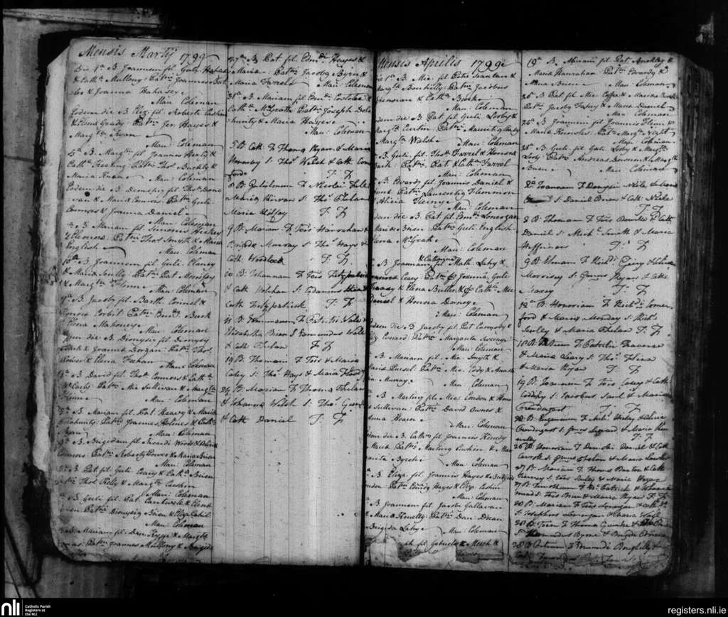 St. Mary's, Clonmel; County of Tipperary, Waterford; Diocese of Waterford and Lismore. Baptisms, Mar. 1799 to Apr. 1799