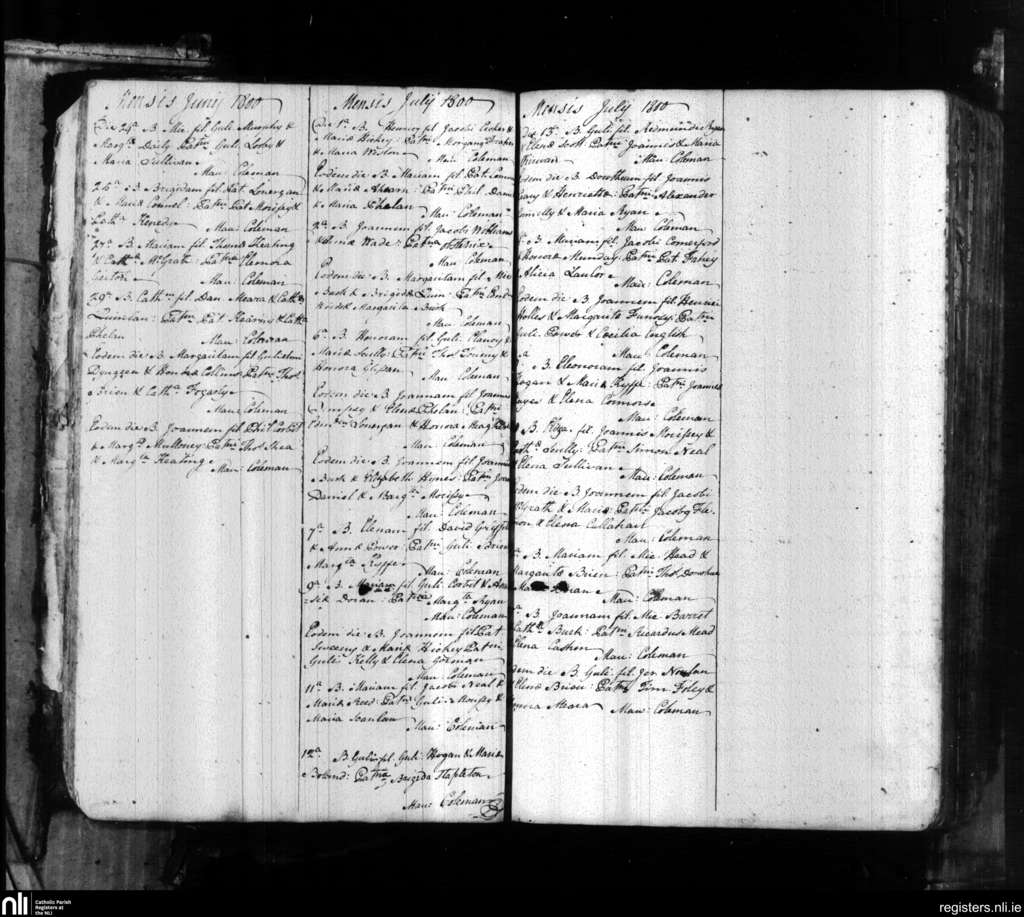 St. Mary's, Clonmel; County of Tipperary, Waterford; Diocese of Waterford and Lismore. Baptisms, June 1800 to July 1800