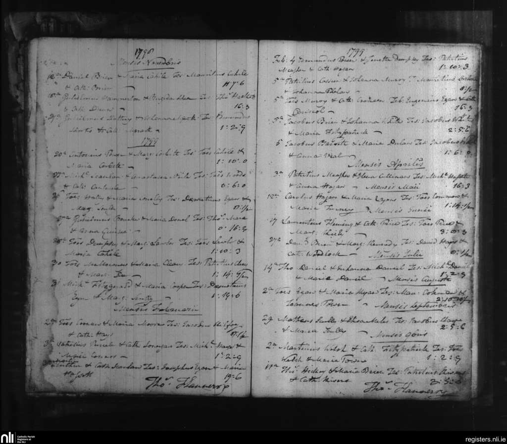 St. Mary's, Clonmel; County of Tipperary, Waterford; Diocese of Waterford and Lismore. Marriages, Nov. 1798 to Oct. 1799