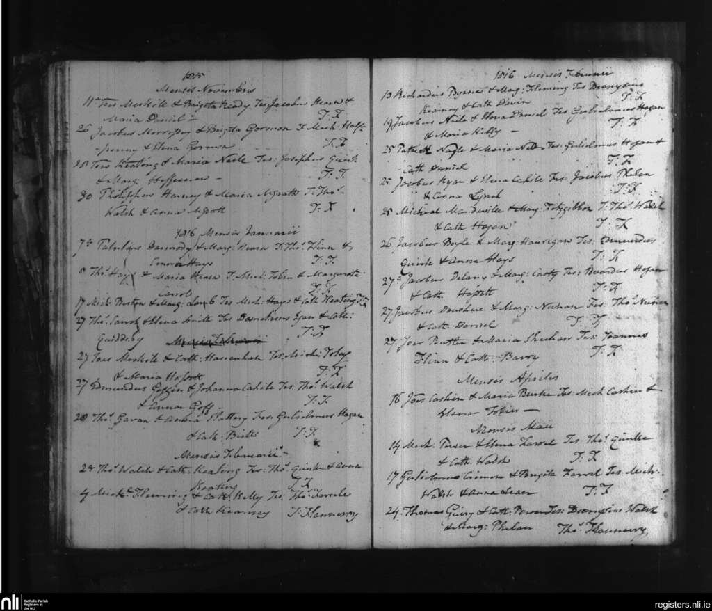 St. Mary's, Clonmel; County of Tipperary, Waterford; Diocese of Waterford and Lismore. Marriages, Nov. 1815 to May 1816