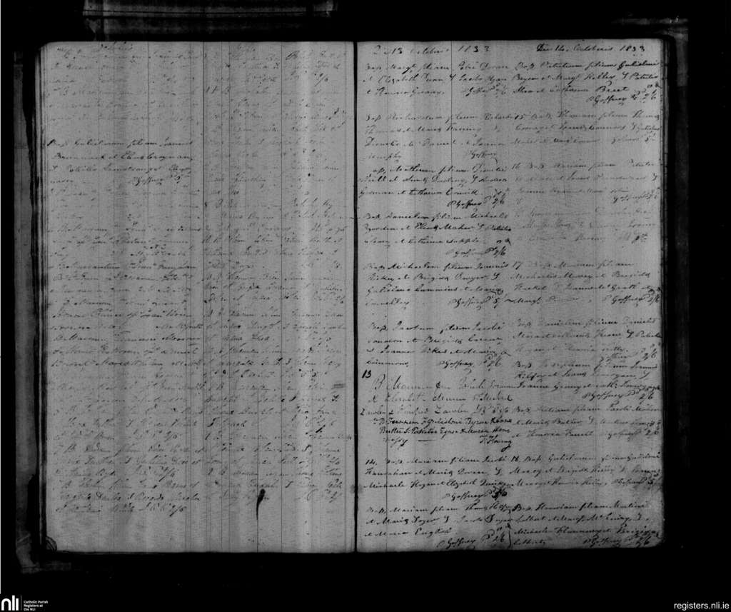 St. Mary's, Clonmel; County of Tipperary, Waterford; Diocese of Waterford and Lismore. Baptisms, Oct. 1833