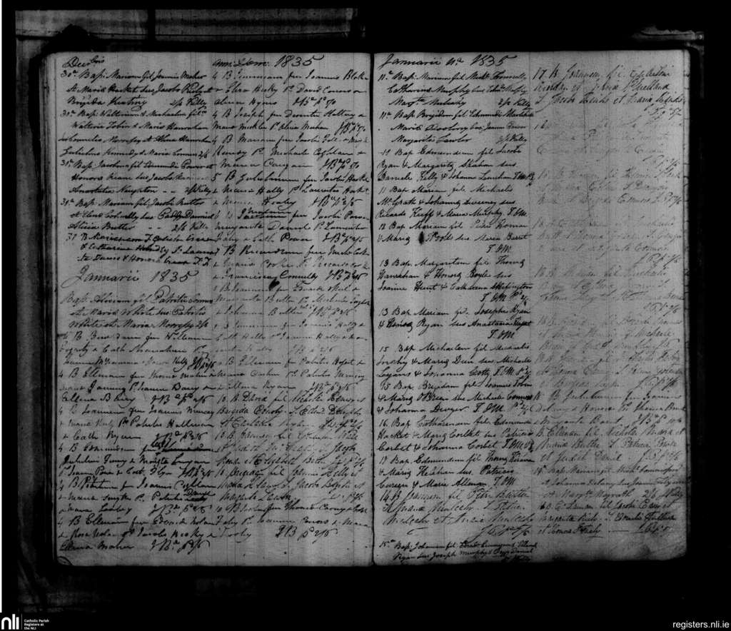 St. Mary's, Clonmel; County of Tipperary, Waterford; Diocese of Waterford and Lismore. Baptisms, Dec. 1834 to Jan. 1835