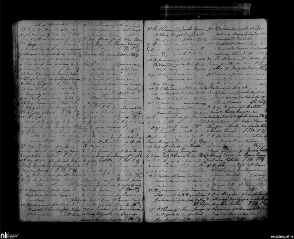 St. Mary's, Clonmel; County of Tipperary, Waterford; Diocese of Waterford and Lismore. Baptisms, Dec. 1838 to Feb. 1839