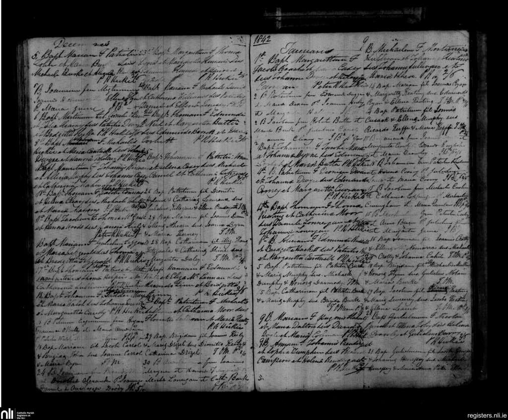 St. Mary's, Clonmel; County of Tipperary, Waterford; Diocese of Waterford and Lismore. Baptisms, Dec. 1841 to Jan. 1842