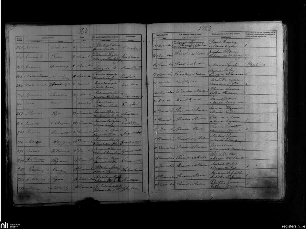 St. Mary's, Clonmel; County of Tipperary, Waterford; Diocese of Waterford and Lismore. Baptisms, Nov. 1866 to Dec. 1866