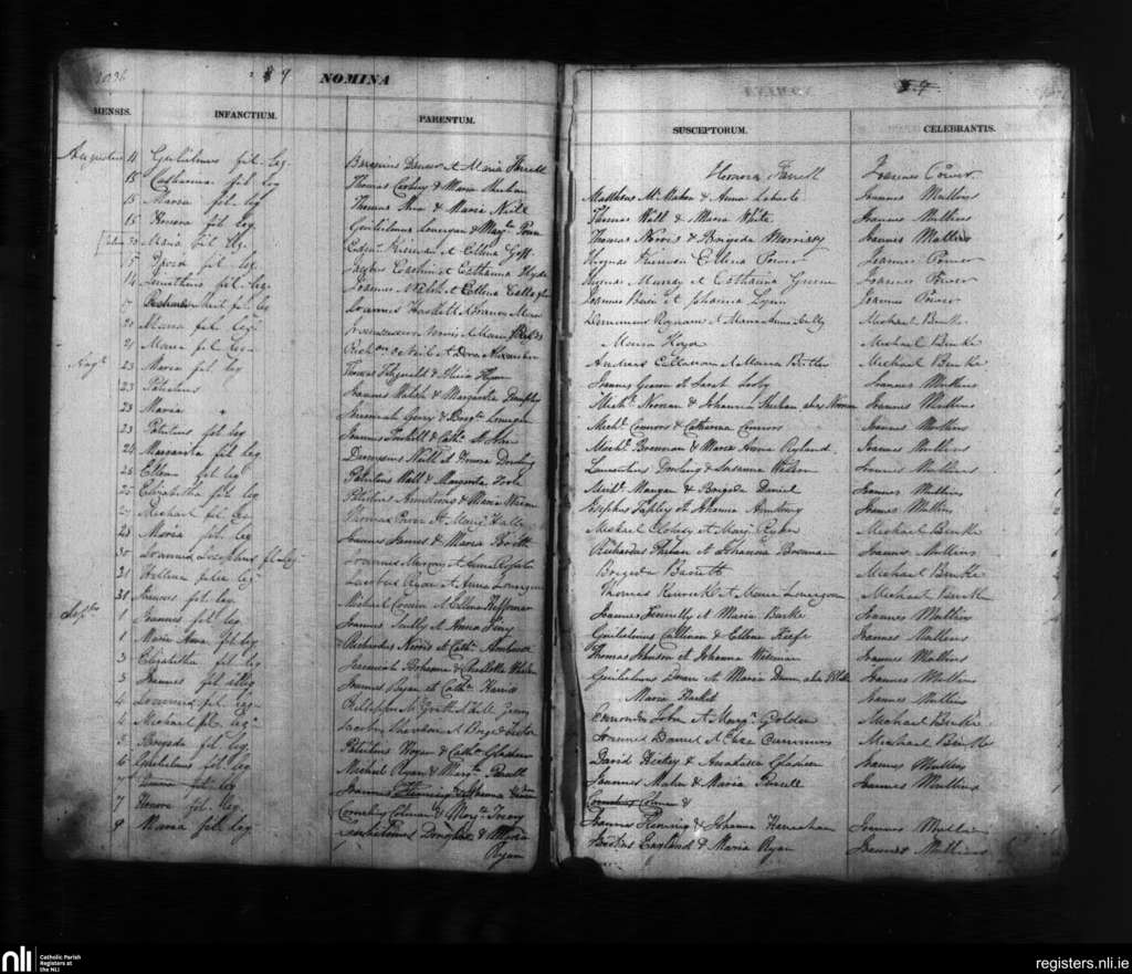 Ss Peter and Paul, Clonmel; County of Tipperary, Waterford; Diocese of Waterford and Lismore. Baptisms, Aug. 1836 to Sep. 1836