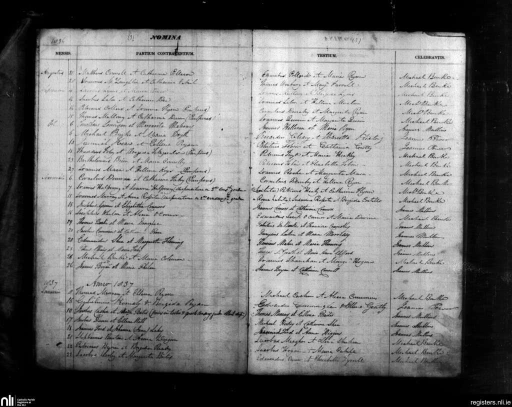 Ss Peter and Paul, Clonmel; County of Tipperary, Waterford; Diocese of Waterford and Lismore. Marriages, Aug. 1836 to Jan. 1837