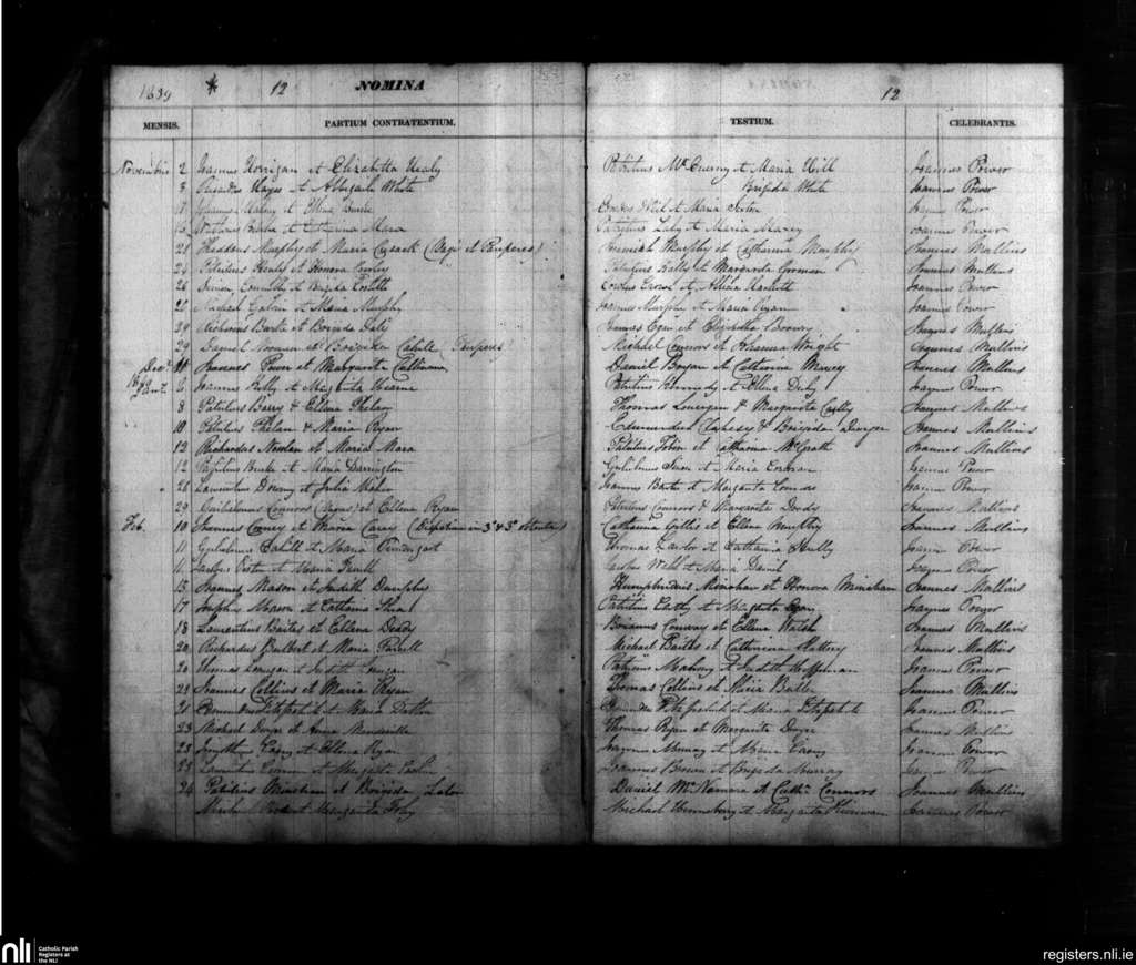 Ss Peter and Paul, Clonmel; County of Tipperary, Waterford; Diocese of Waterford and Lismore. Marriages, Nov. 1839 to Feb. 1840