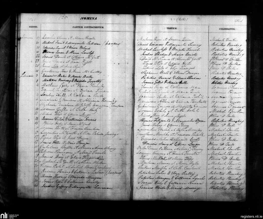 Ss Peter and Paul, Clonmel; County of Tipperary, Waterford; Diocese of Waterford and Lismore. Marriages, Jan. 1844 to Feb. 1844