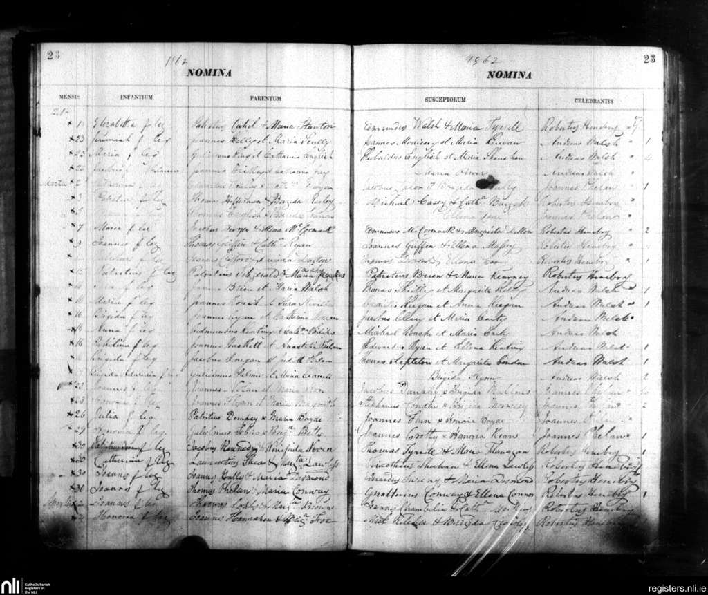 Ss Peter and Paul, Clonmel; County of Tipperary, Waterford; Diocese of Waterford and Lismore. Baptisms, Feb. 1862 to Apr. 1862