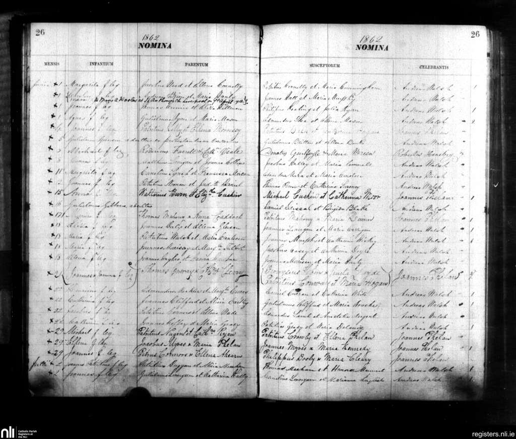 Ss Peter and Paul, Clonmel; County of Tipperary, Waterford; Diocese of Waterford and Lismore. Baptisms, June 1862 to July 1862