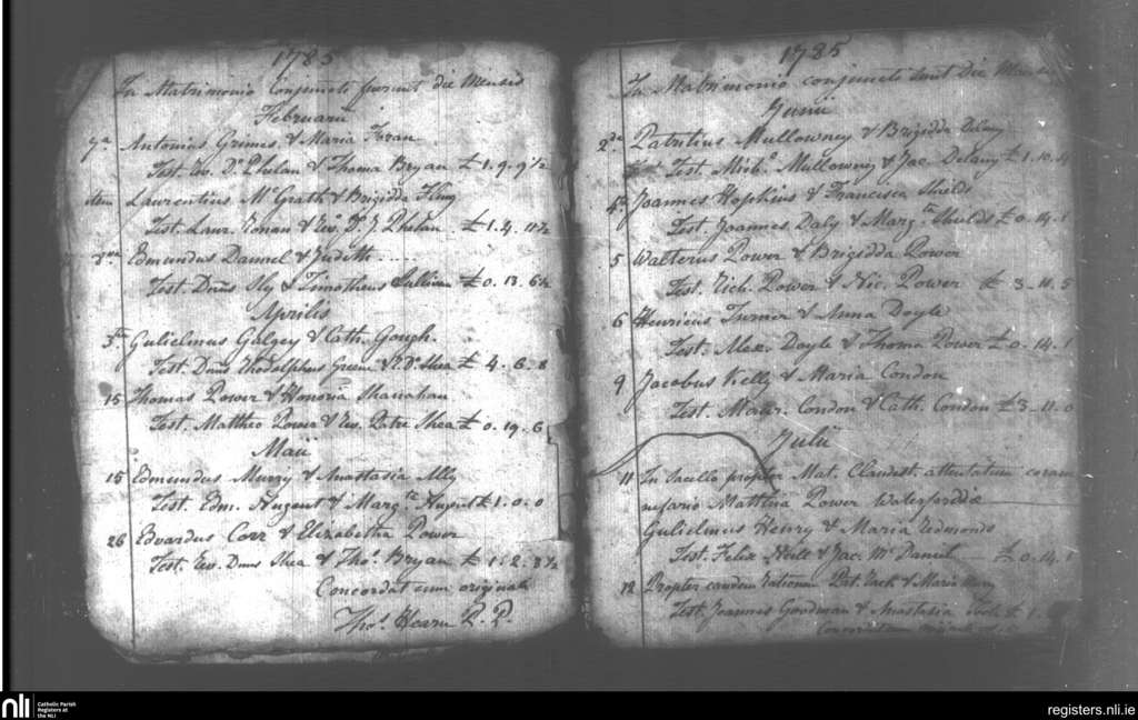 Killea; County of Waterford; Diocese of Waterford and Lismore. Marriages, Feb. 1785 to July 1785