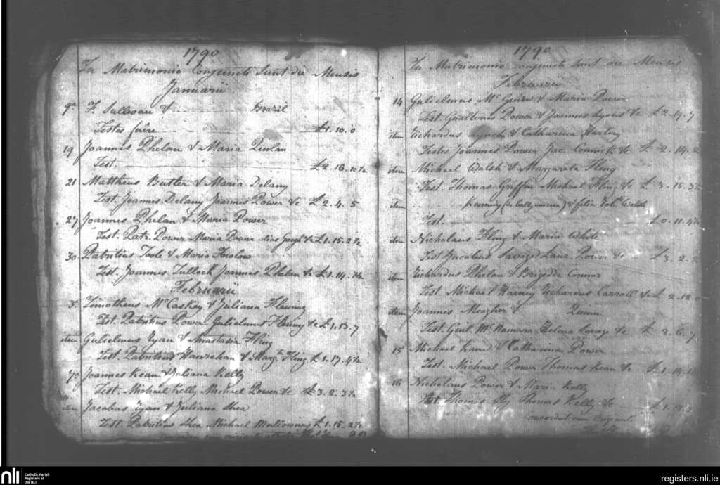 Killea; County of Waterford; Diocese of Waterford and Lismore. Marriages, Jan. 1790 to Feb. 1790