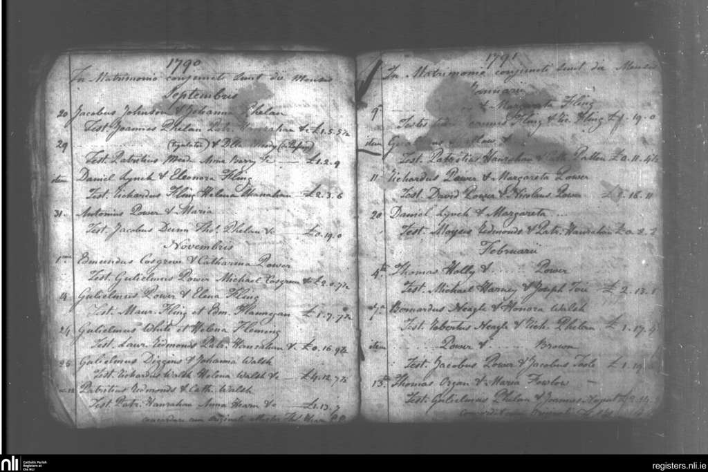 Killea; County of Waterford; Diocese of Waterford and Lismore. Marriages, Sep. 1790 to Feb. 1791