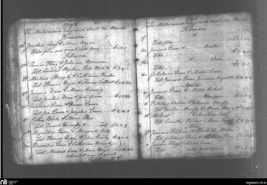 Killea; County of Waterford; Diocese of Waterford and Lismore. Marriages, Jan. 1795 to May 1795