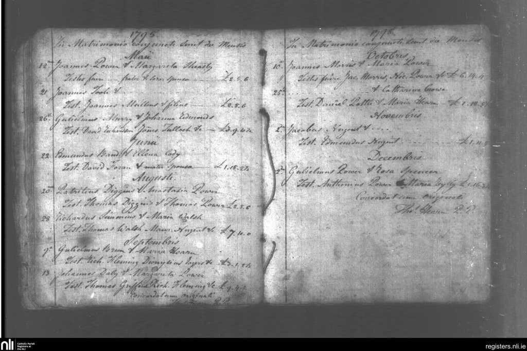 Killea; County of Waterford; Diocese of Waterford and Lismore. Marriages, May 1795 to Dec. 1795