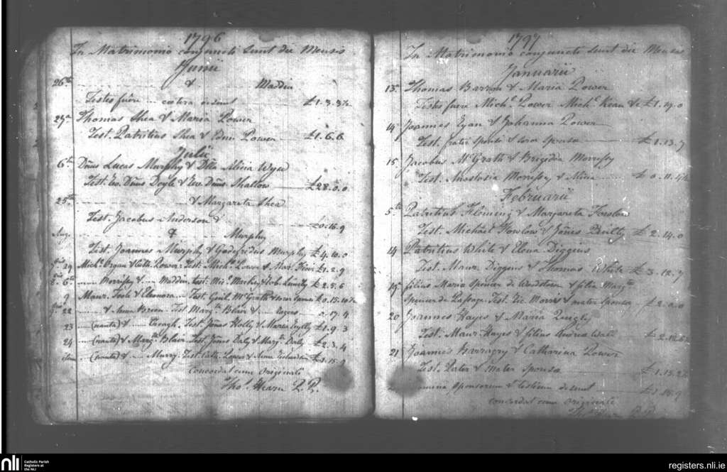 Killea; County of Waterford; Diocese of Waterford and Lismore. Marriages, June 1796 to Feb. 1797