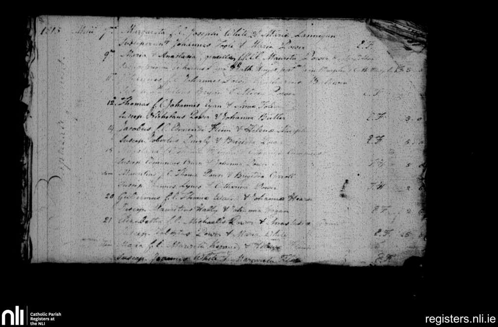 Killea; County of Waterford; Diocese of Waterford and Lismore. Baptisms, May 1815