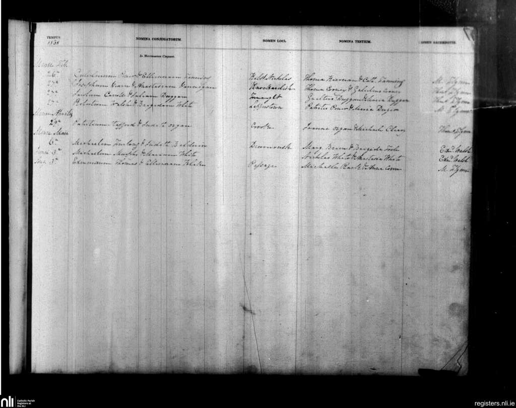 Killea; County of Waterford; Diocese of Waterford and Lismore. Marriages, Feb. 1838 to Aug. 1838