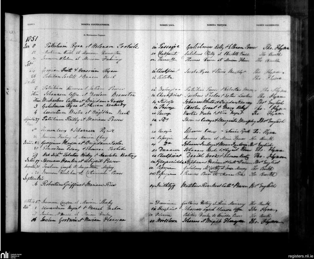Killea; County of Waterford; Diocese of Waterford and Lismore. Marriages, Jan. 1851 to Nov. 1851