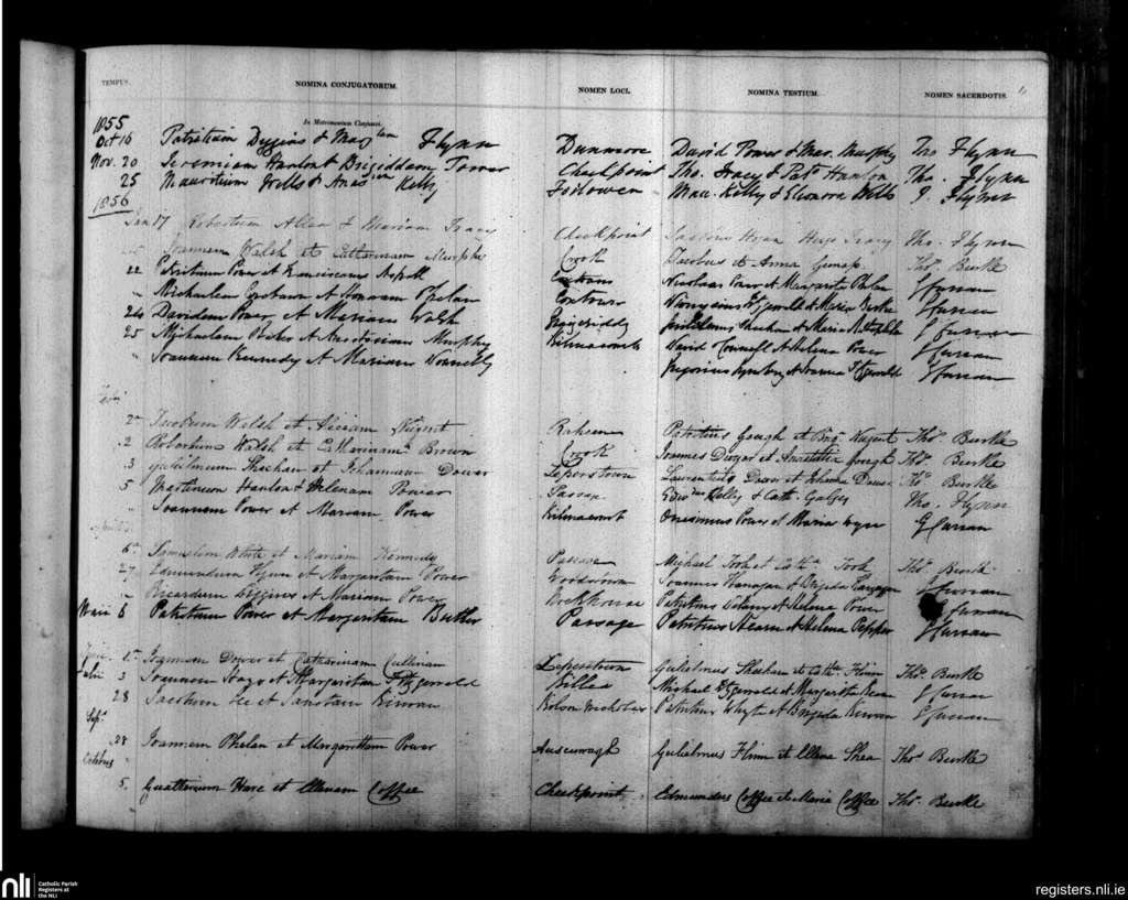 Killea; County of Waterford; Diocese of Waterford and Lismore. Marriages, Oct. 1855 to Oct. 1856