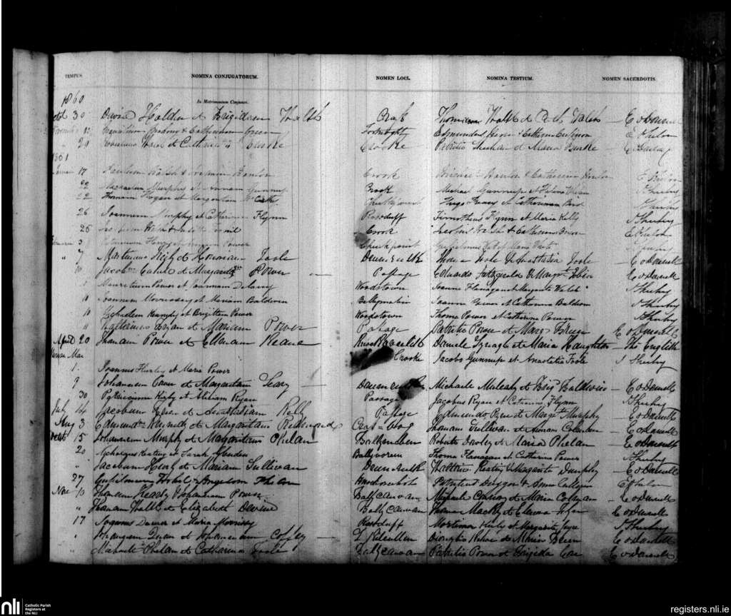 Killea; County of Waterford; Diocese of Waterford and Lismore. Marriages, Oct. 1860 to Nov. 1861