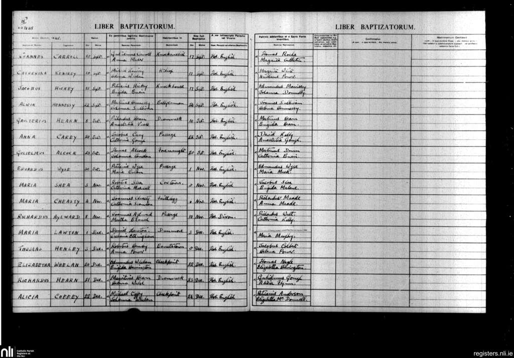 Killea; County of Waterford; Diocese of Waterford and Lismore. Baptisms, Sep. 1848 to Dec. 1848