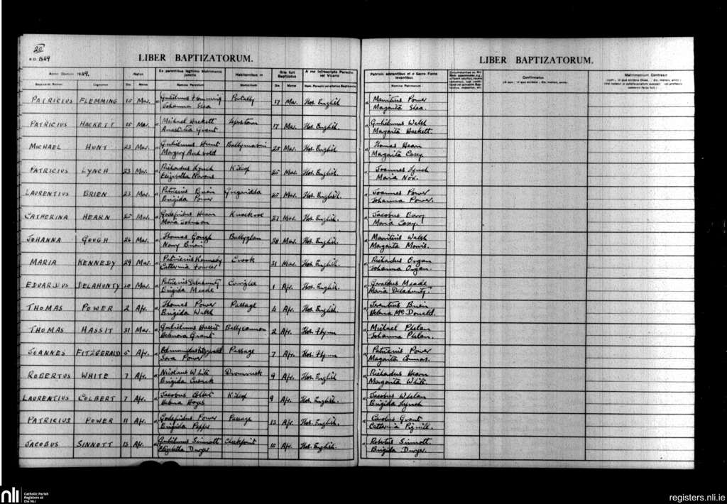 Killea; County of Waterford; Diocese of Waterford and Lismore. Baptisms, Mar. 1849 to Apr. 1849