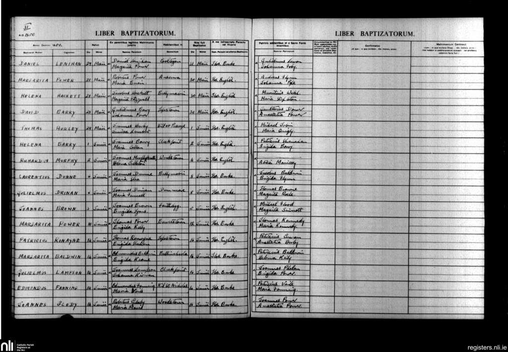 Killea; County of Waterford; Diocese of Waterford and Lismore. Baptisms, May 1850 to June 1850