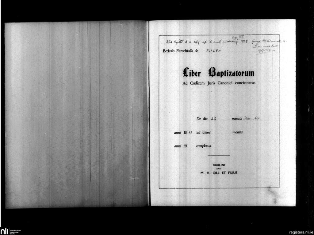 Killea; County of Waterford; Diocese of Waterford and Lismore. Baptisms