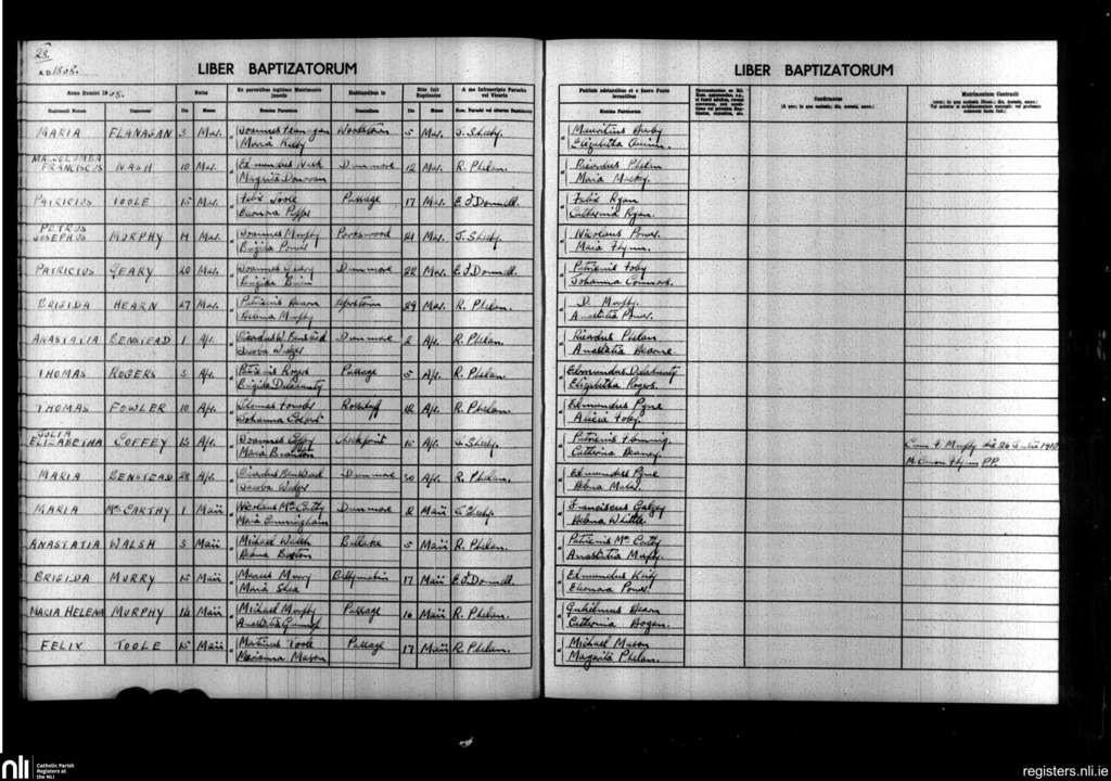 Killea; County of Waterford; Diocese of Waterford and Lismore. Baptisms, Mar. 1868 to May 1868