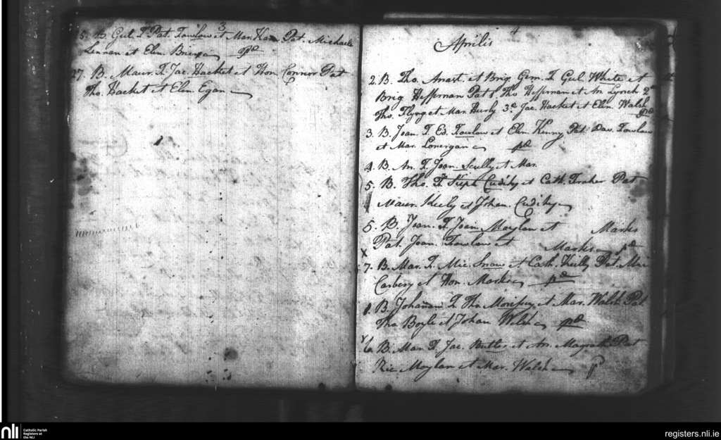 Dungarvan; County of Waterford; Diocese of Waterford and Lismore. Baptisms, Mar. 1787 to Apr. 1787