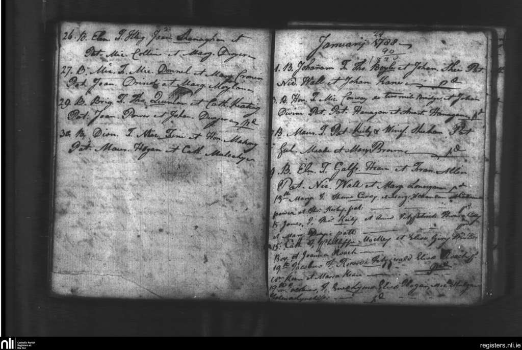 Dungarvan; County of Waterford; Diocese of Waterford and Lismore. Baptisms, Dec. 1787 to Jan. 1788